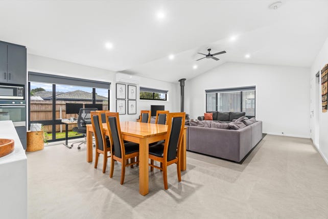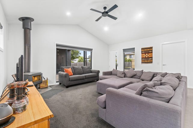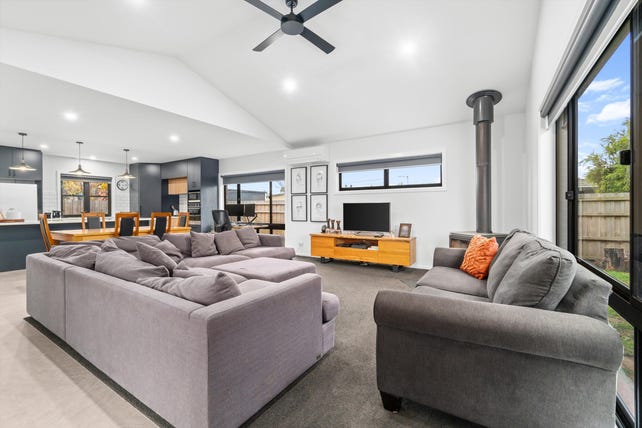 Discover your dream home in this near new Legend Homes 4-bedroom, 2-bathroom residence. Sitting privately on a 681m2 block, the property is perfectly designed for comfort and modern living. As you step inside, you're greeted by an expansive open living space featuring soaring high ceilings that create an airy and inviting atmosphere. The state-of-the-art modern kitchen is a chef's delight, equipped with top-of-the-line appliances, sleek benchtops, and ample storage, making it the heart of the home. Large double-glazed windows throughout ensure the home is bathed in natural light, enhancing its spacious feel while solid fuel heating and split system air conditioning keep you comfortable all year-round.
